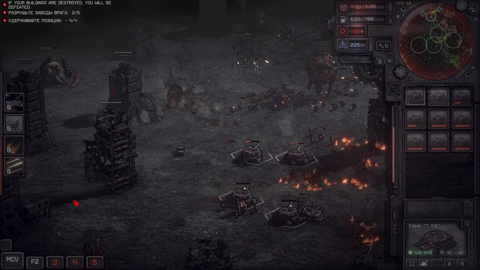 Dust Front – это классическая RTS с элементами глобальной стратегии и нелинейной кампанией. Проводите стратегические манёвры, заваливайте своих врагов пушечным мясом или втопчите их в каменный век ковровыми бомбардировками на безжизненных полях пыльного фронта.
